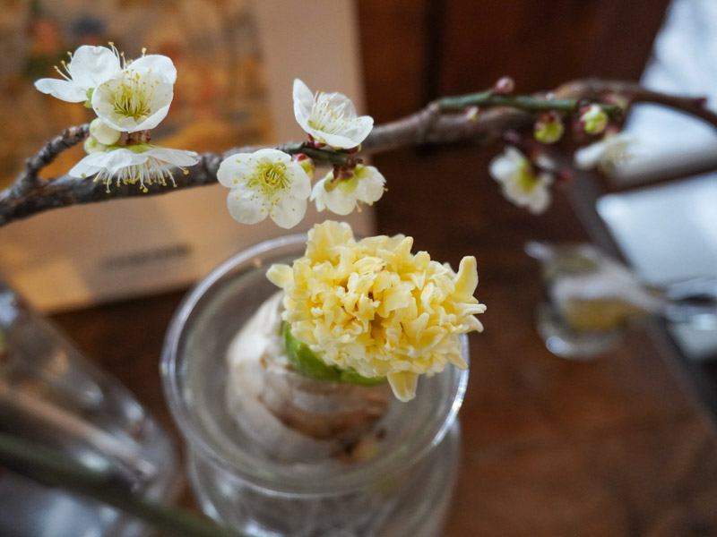 いただいた梅の花が咲いた。